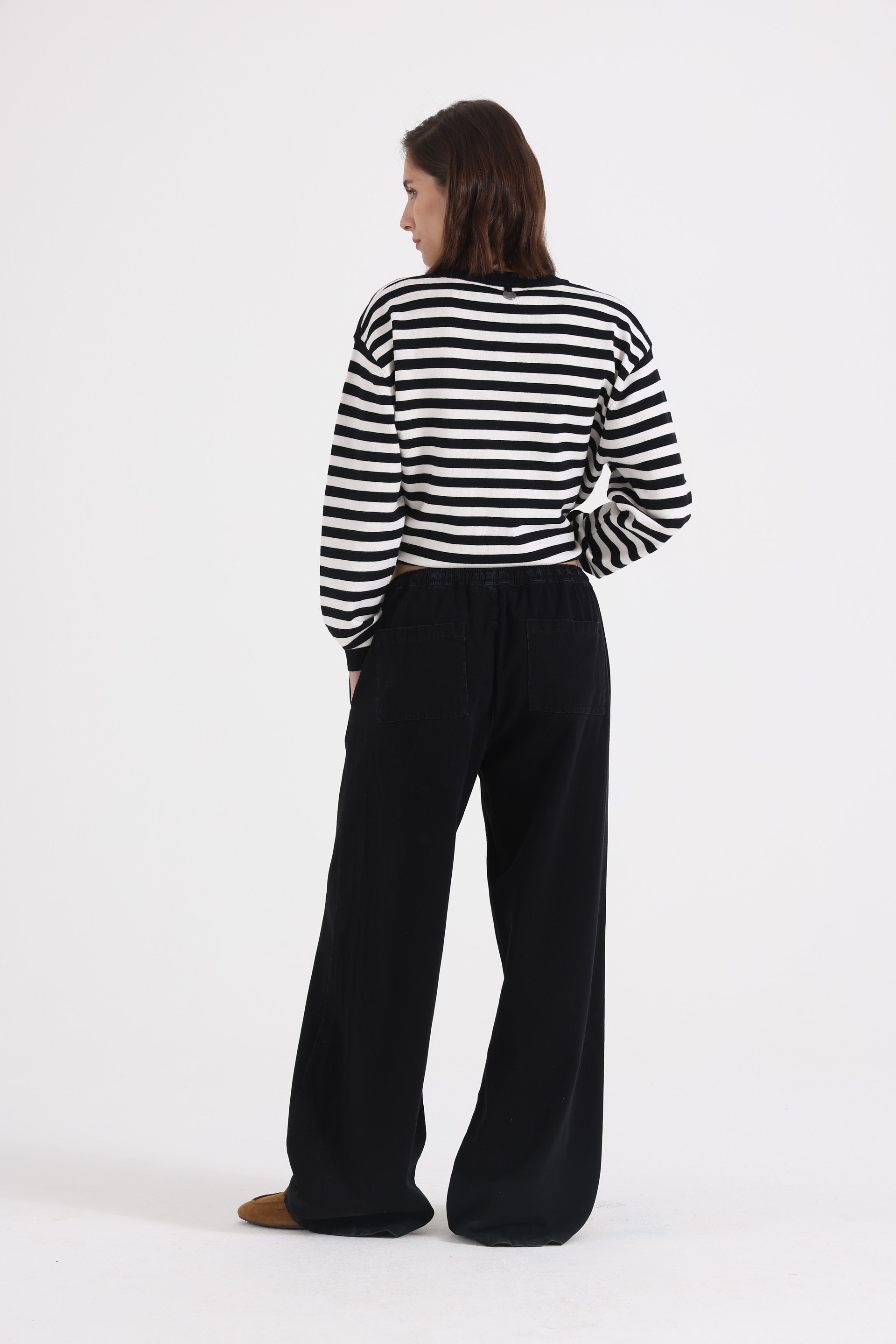 Combinalo con sweaters amplios o cardigans para un look relajado de invierno, o con camisas y zapatillas para un outfit urbano más pulido. Funciona también con botas bajas o mocasines para elevarlo sin perder comodidad.