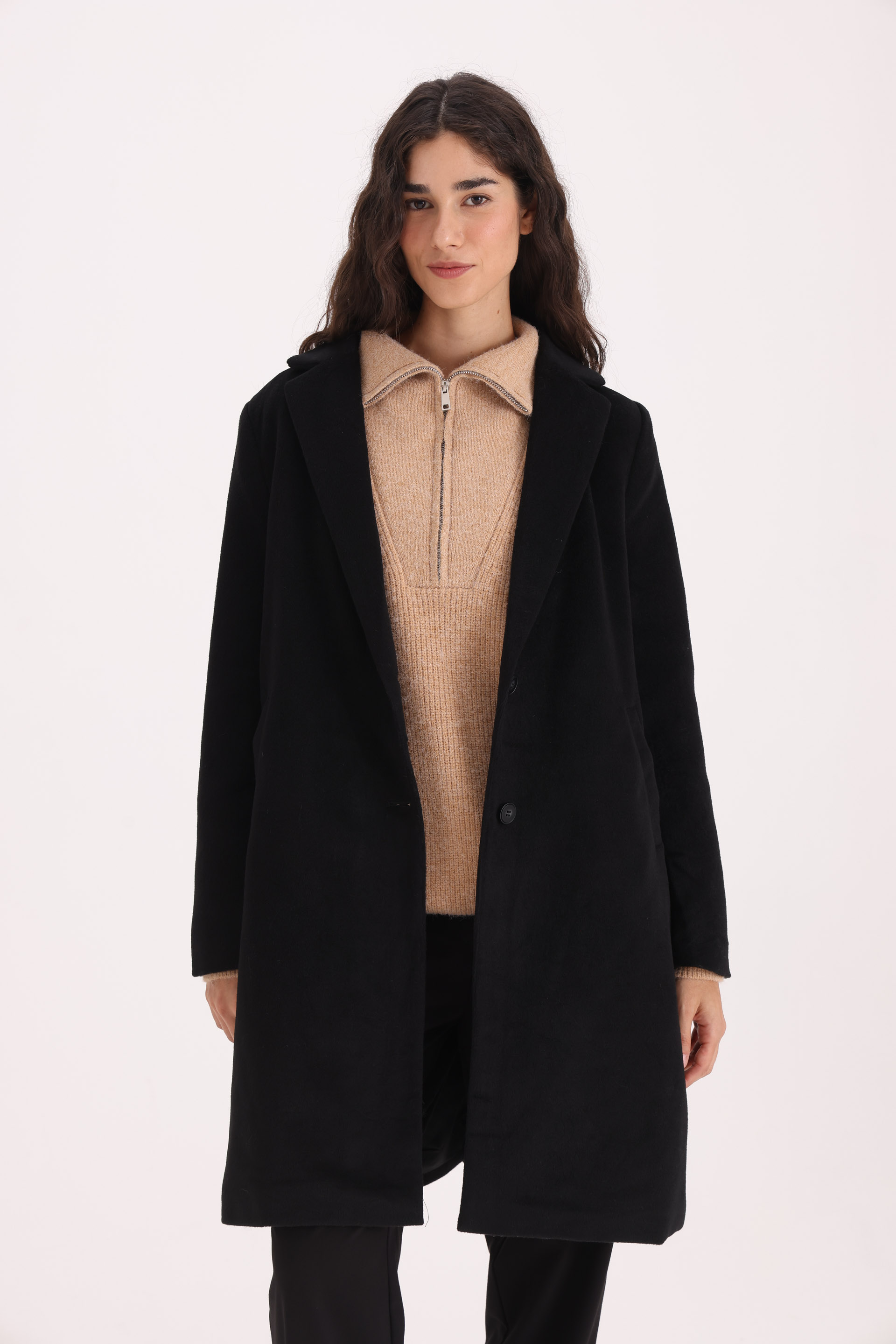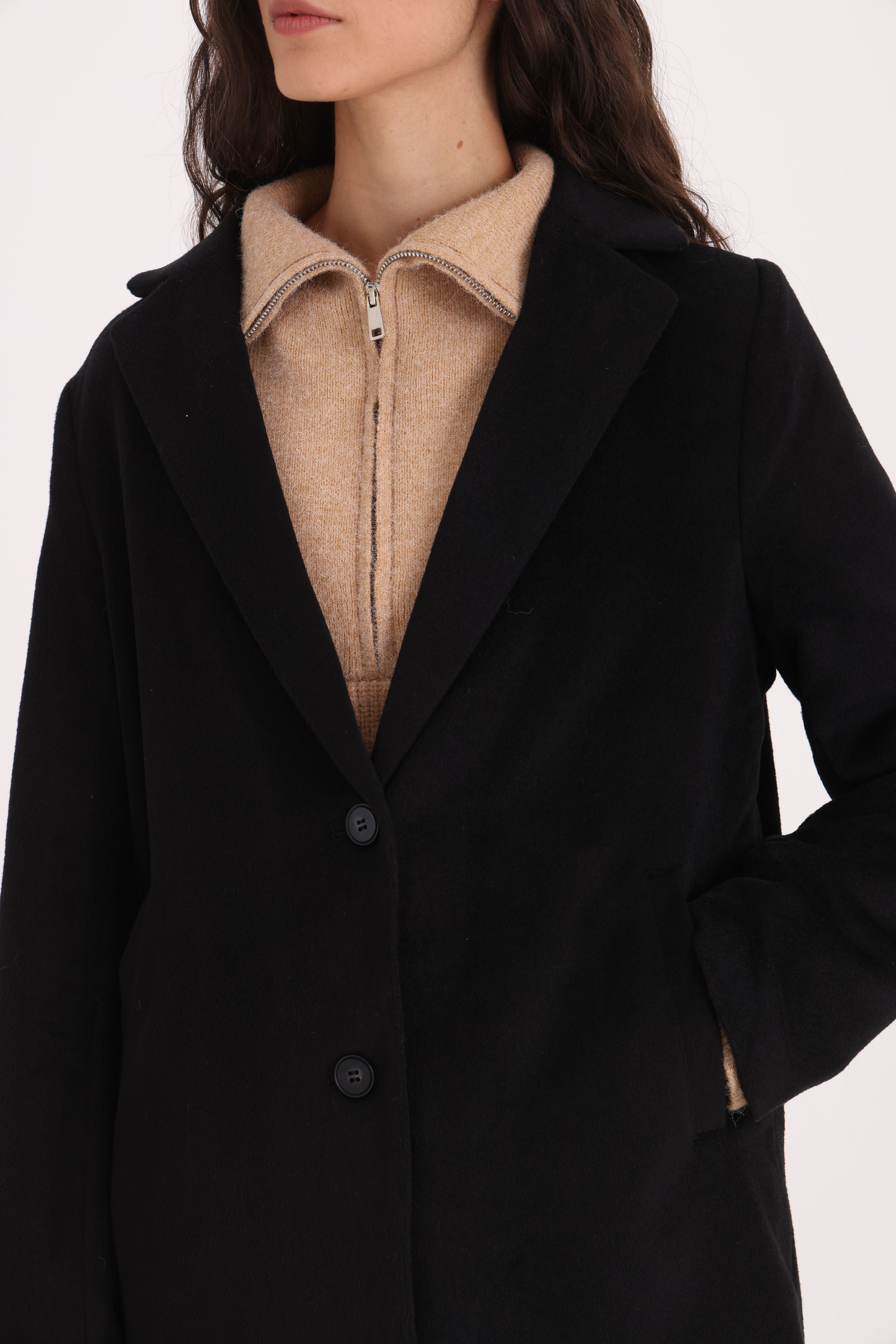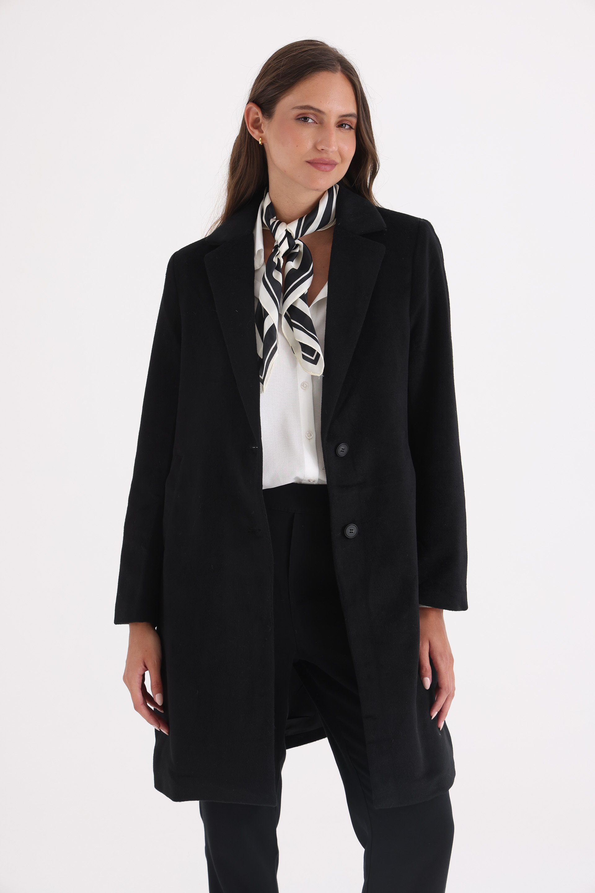 Tapado importado de largo a la rodilla con abotonadura simple por dos botones. Posee bolsillos laterales, tajo en espalda y forreria interna. Confeccionado en paño de lana y poliester.