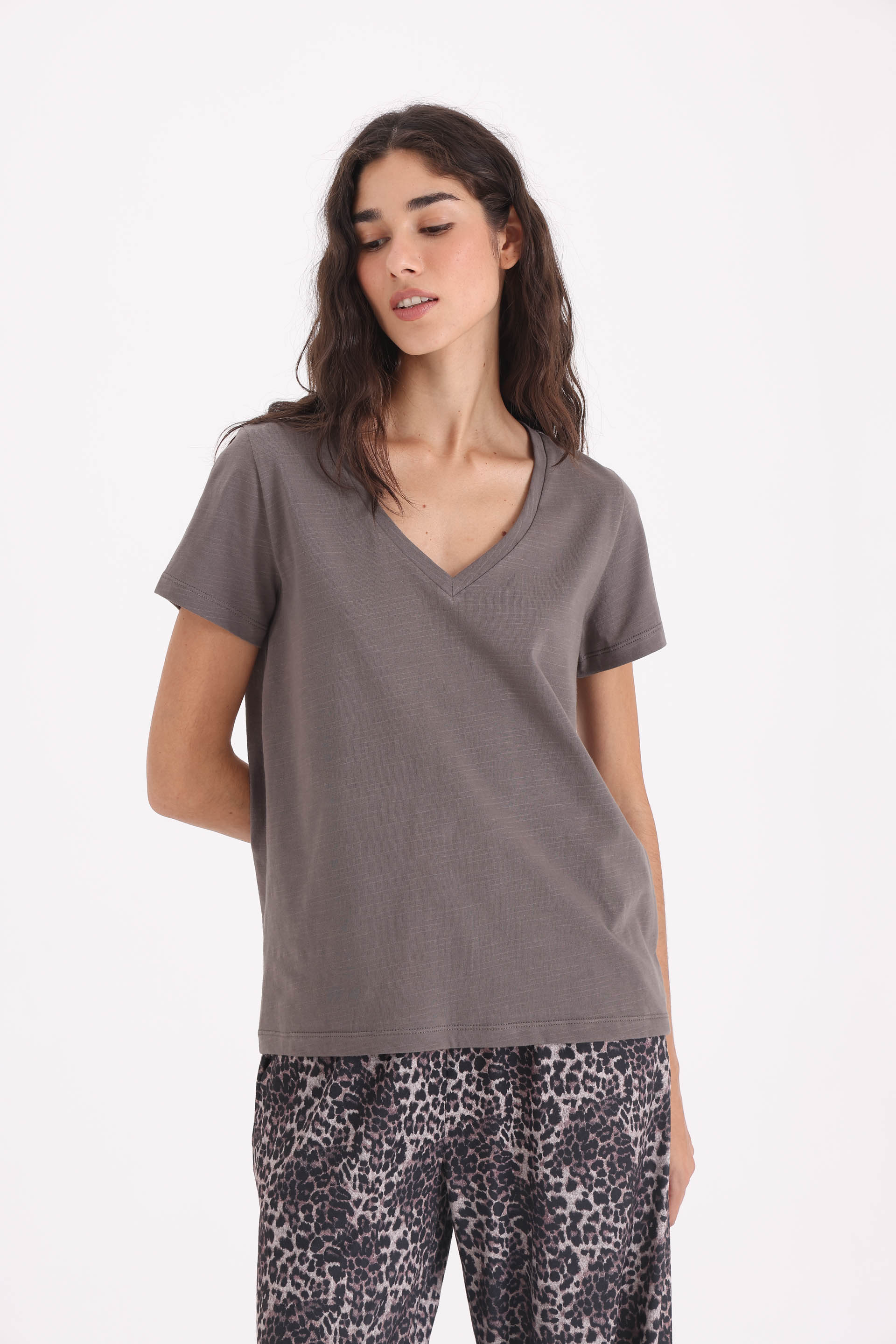 Confeccionada en algodón y elastano, ofrece suavidad y comodidad. Diseño simple con breteles finitos, ideal para combinar con cualquier estilo. La modelo usa talle 42.